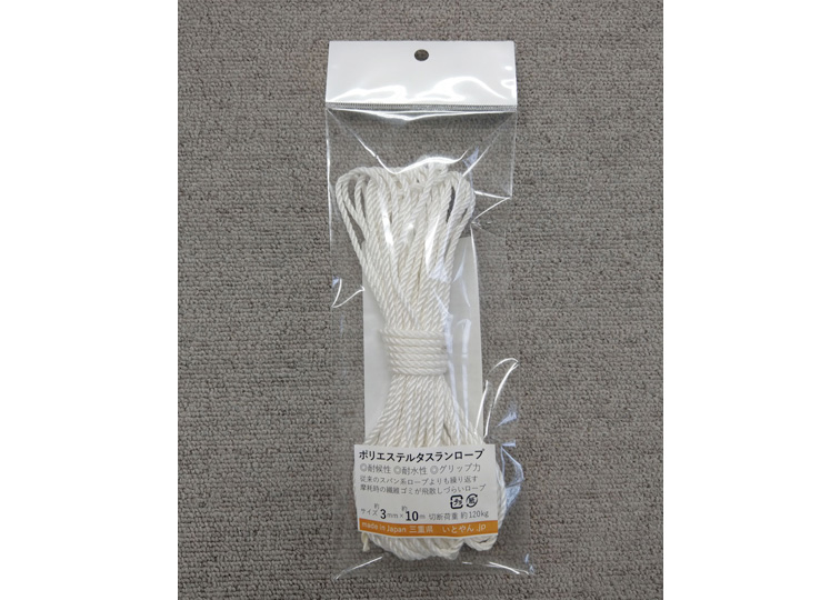 一般的なポリエステルの特徴である、耐候性・耐熱性・耐薬品性に加え、同径のスパンポリエステルロープに比べて、軽量・高強度かつ適度な伸度とコシがあります。