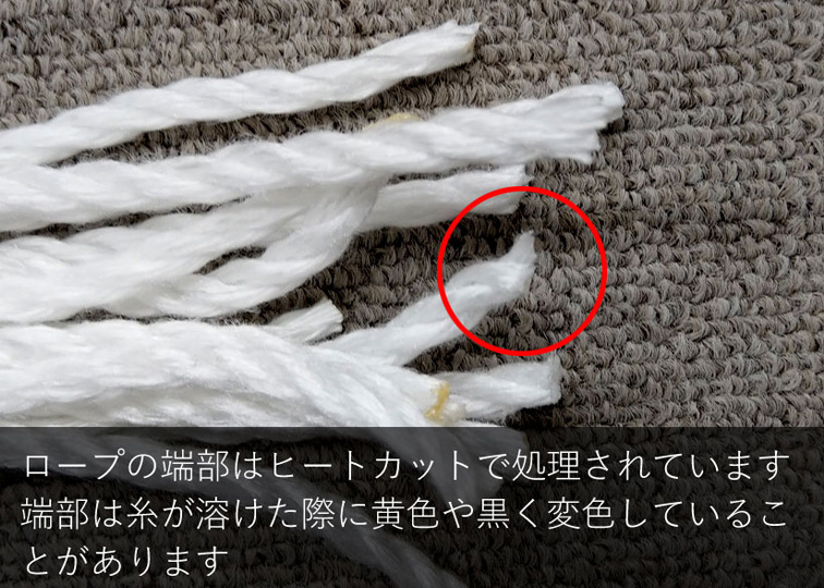 商品の末端処理はヒートカッターによる熱切断をしてあります。