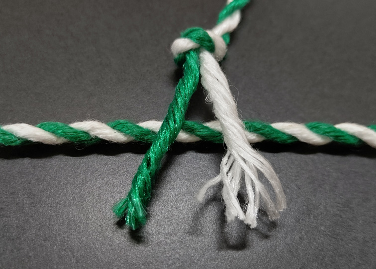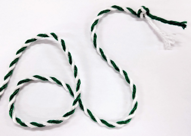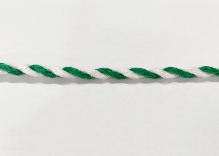 白色と緑色の2色で撚られたおしゃれなで可愛い紐です。