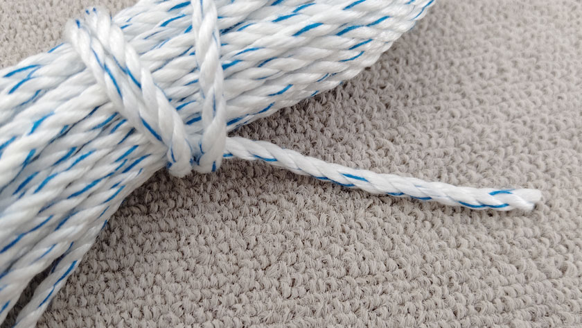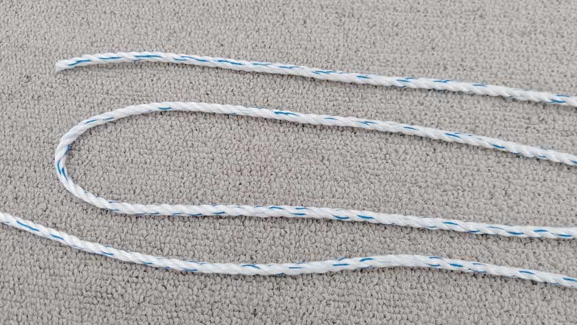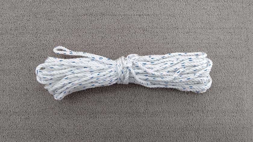 白いロープに青線を入れることで視認性を向上させたタスランロープです。