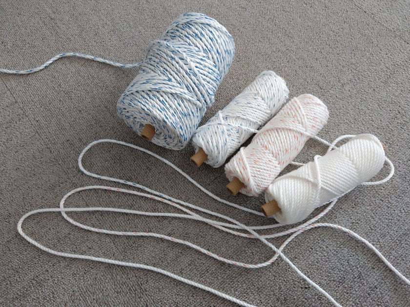 テント・タープの設営用の張り綱や物干し用ロープ等アウトドア用ロープの他、園芸用、マクラメ用などインテリア雑貨用ロープとしても用いられています。